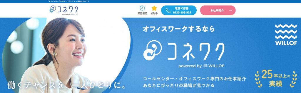 派遣会社ウィルオブ・ワーク(通称:ウィルオブ)では、担当コーディネーターが希望条件に近い求人を多数提案しています。少しでもコールセンターやオフィスワークに興味がありましたら、ぜひ相談ください!
