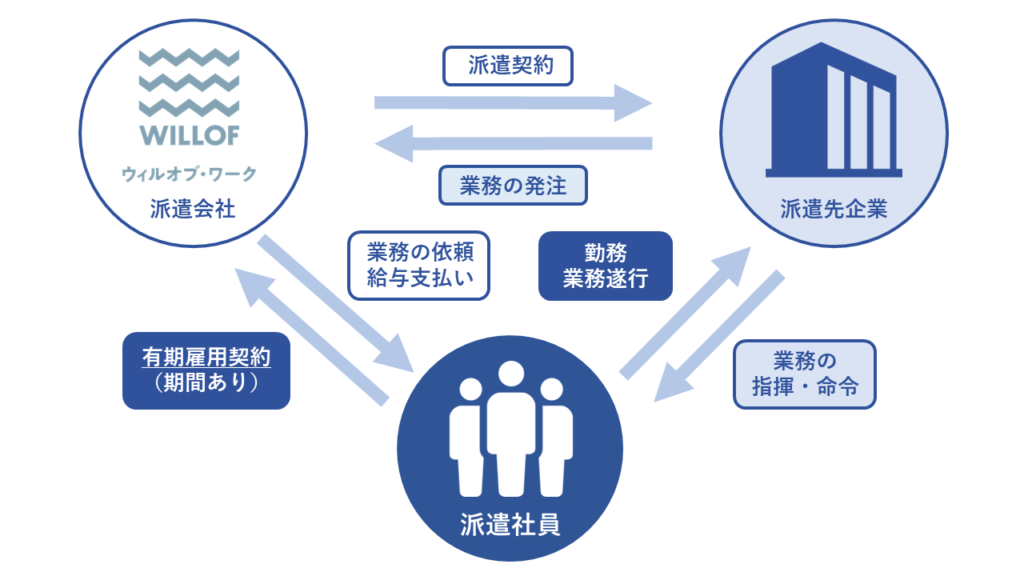 派遣社員は派遣会社と労働契約を結び、給与の支払いや社会保険の手続き、有給休暇の管理などは派遣会社が行います。
