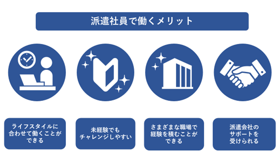 「派遣」という働き方には、勤務時間や勤務地を選びやすいことや、未経験から挑戦しやすいことなど、多くのメリットがあります。