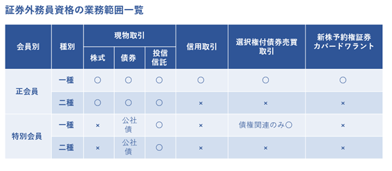 正会員資格は、証券会社で証券商品の勧誘・販売を行うために必要な資格です。