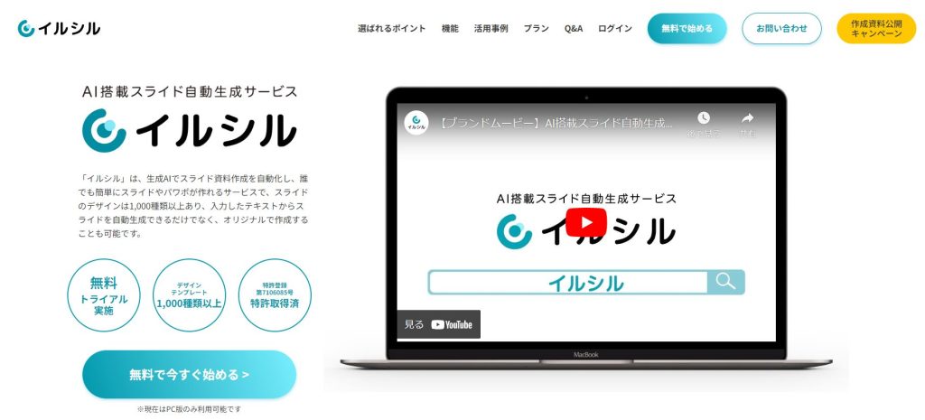 イルシルは生成AIを活用した日本製の資料作成ツールです。日本人向けに開発された使いやすいインターフェースにより、誰でも簡単にスライド資料を作成できます。特許取得済みの技術を活用し、1,000種類以上のデザインテンプレートからスライドを自動生成するため、オリジナルのスライドを手軽に作成することができます。チームでの共同作業やデータ出力、クライアントへの提出資料としての利用には、パーソナルプラン(有料プラン)以上がおすすめです。
