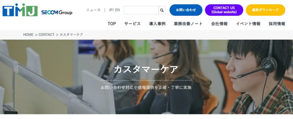 株式会社TMJは東京に本社を置き、北海道から南は鹿児島まで主要都市にコールセンターを構えているSECOMのグループ会社です。
