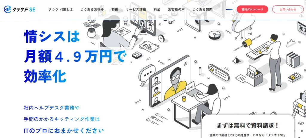 クラウドSEとは、IT活用に課題を感じている企業向けのサブスクリプション型IT活用支援サービスです。経営レベルのシステム企画から、現場の社員様のパソコンの使い方までトータルサポートしてくれます。わかりやすく4つのプランがあり、対応してもらいたい業務と照らし合わせて選ぶ形態です。