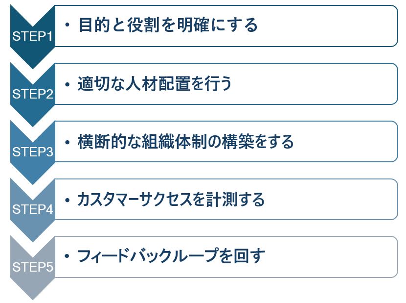 カスタマーサクセスチームの構築には、以下のポイントに注意して進めていくことが重要です。