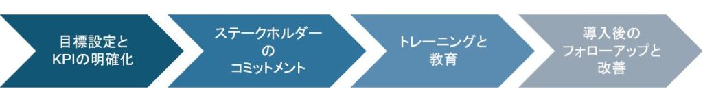 特に重要なのはオンボーディングのタイミングです。最初の導入でつまづくと、なかなか現場での浸透や活用が進みません。逆に、最初の導入がスムーズで効果が出始めると、より活発な活用が行われます。最近ではオンボーディングをベンダー側が積極的に支援するようになってきたのでうまく活用することと、ベンダーに任せきりにするのではなく、社内で伝道師的な立ち位置となる人間を設け、積極的に啓蒙や立ち上がりの支援を行うことが大切です。
