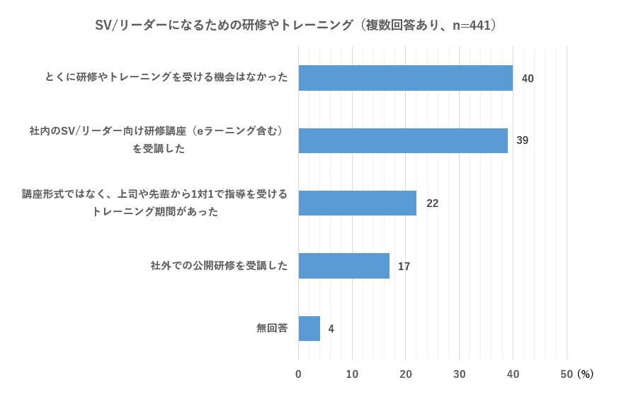 SVが重要というのはどのセンターも口を揃えて言いますが、多くのセンターでSVへの研修や教育体制が不十分になっているのが現実です。コールセンター白書2022の調査結果を見ても、ほぼ4割の人々が特別な研修やトレーニングを受けていないと答えており、この数字からもその実態が分かります。