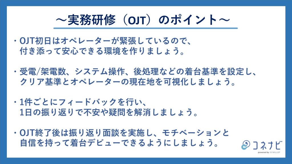 では、オペレーターの教育・研修を実施する際に押さえておきたいポイントを解説していきます。