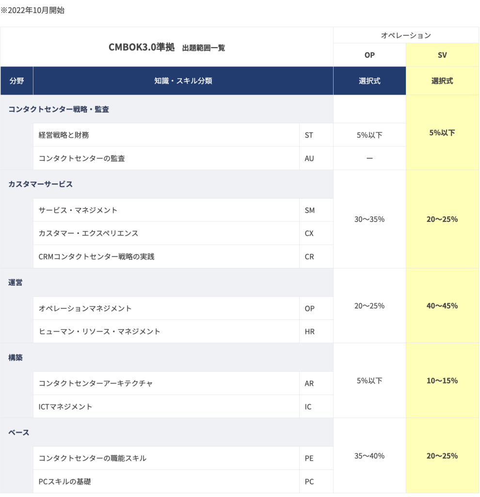 スーパーバイザー(SV)資格の出題範囲は、日本コンタクトセンター教育検定協会によって構築されたコンタクトセンター知識スキル体系CMBOK3.0を基礎としています。
