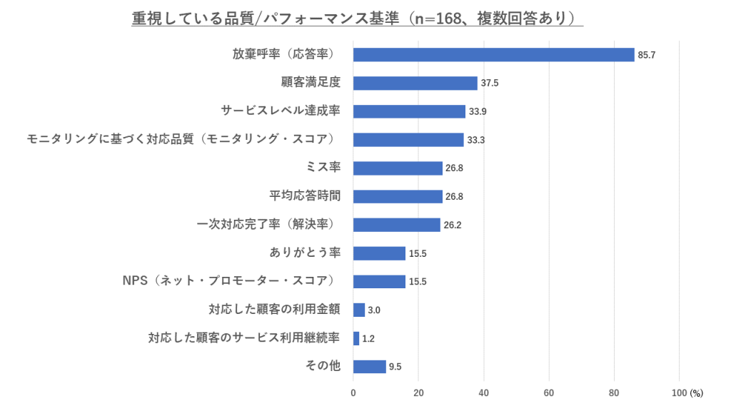 実際、コールセンター白書2022によると、多くのコールセンターが放棄呼率(=応答率)を最重要KPIとして位置づけており、継続的なモニタリングと対策が重視されています。