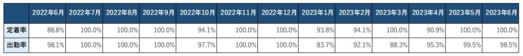 しかしA社の例では、2022年6月の拠点立ち上げ直後から安定して就業できていることが数値として現れています。