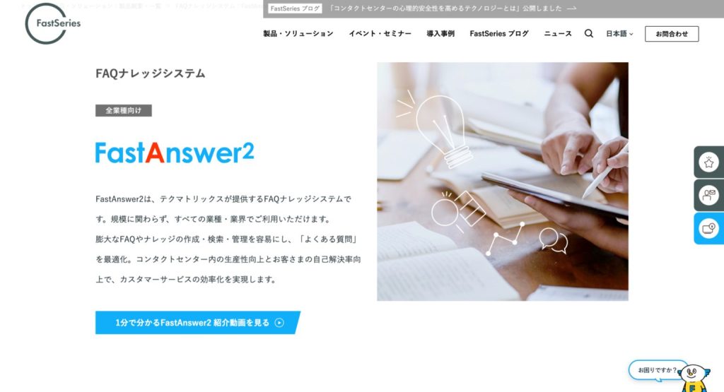 FastAnswer2は、社内向けFAQと一般公開用FAQの両方に対応し、複数のサイトを単一のシステムで一元管理することができます。これにより、情報の整合性を保ちながら、効率的な運用が可能になります。また、CRMシステム「FastHelp」との連携により、マスタ情報、製品・FAQ情報、権限設定などを共通のデータベースで管理できます。過去の問い合わせ履歴を容易にナレッジ化できる点も、システムの大きな強みとなっています。