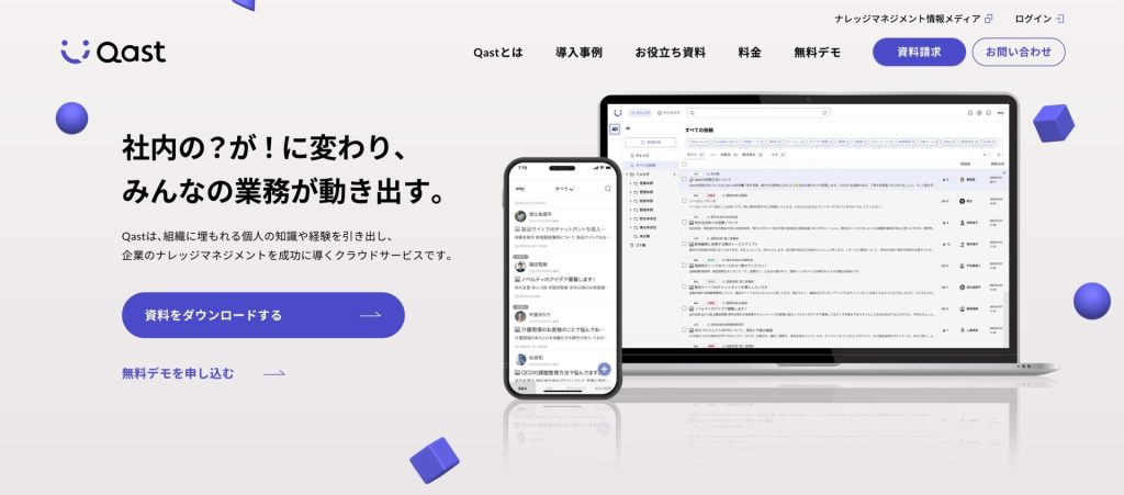 Qastの最大の特徴は、組織の知識を効果的に循環させるための多彩な機能です。従来型の単なる情報共有にとどまらず、Q&Aや「こましり」といったニーズ起点での知識共有の仕組みを実装しています。また、社内の専門家を可視化するユーザータグ機能や、投稿へのリアクション機能により、知識共有のモチベーションを高める工夫も施されています。