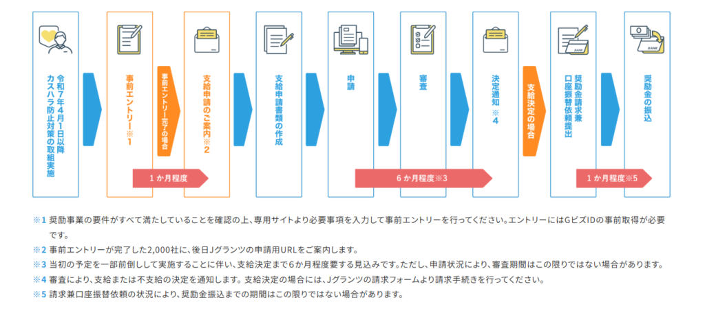 団体向け支援についても、企業向けと同様に申請期間が限られているため、早めの準備が成功のカギとなります。特に団体向け奨励金は、所定の「事前エントリー期間」内にインターネットでのエントリーが必須となっており、書類の準備が整っていても、エントリーが漏れていた場合は申請不可となるため、十分ご注意ください。